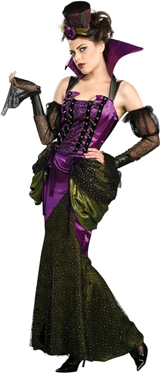 Dracula Donna: Questo costume da contessa dracula comprende un vesito, un girocollo, due manicotti e un copricapo(calze, scarpe e bastone non inclusi).